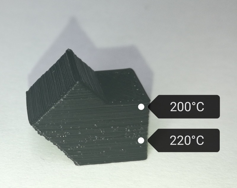 Obwohl die Oberfläche bei einer niedrigeren Temperatur sauberer wird, erreicht PETG bei höheren Temperaturen eine bessere Festigkeit, z.b. 240°C