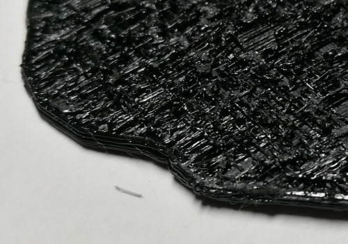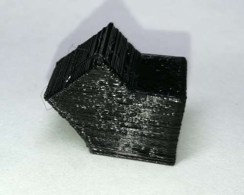 Mit den Standard-Settings hatte ich in Slic3r etwas zu wenig Extrusion_width, die Oberfläche wird dann etwas durchlässig:
