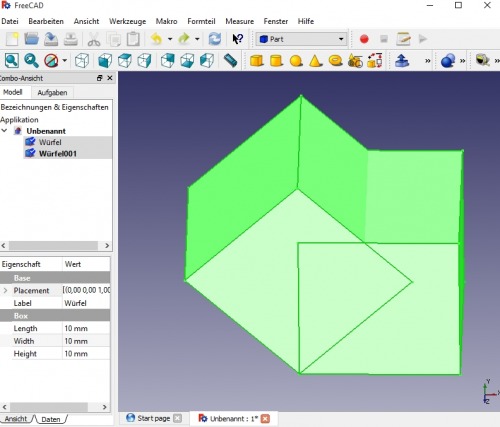 Das Modell: 1x1 Würfel, erstellt mit FreeCAD