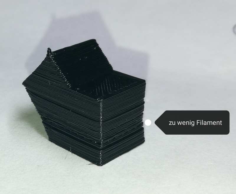 Wenn das Filament bei der Zuführung kurz blockiert wird, wirkt sich das folgendermaßen aus: