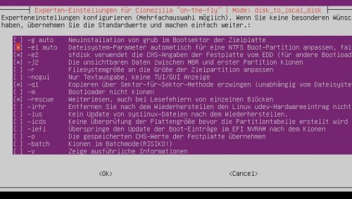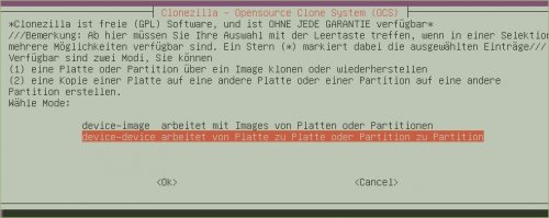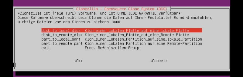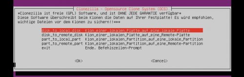 Nach dem verbinden von Quell- und Zieldatenträger, starte ich mit der Clonzilla BootCD