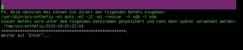 Wenn die Zielfestplatte leer ist startet Clonezilla an dieser Stelle. Befinden sich Daten auf der Zielfestplatte kommt noch einmal ein Dialog bevor der Klonvorgang startet: