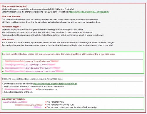 Ein anderes Beispiel für Ransomware ist CryptoWall. CryptoWall ist ein Klon der schon länger bekannten Schadsoftware CryptoLocker. (Dateien: HELP_YOUR_FILES - What happend to your files.txt)