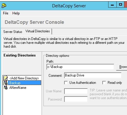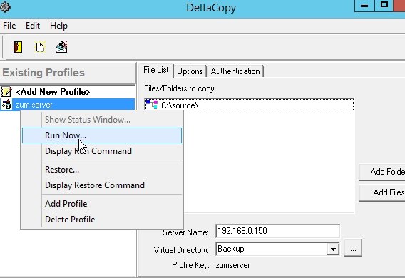 Bestandteil von Deltacopy sind ein Client und ein Serverdienst, wobei der Client Dateien (oder Ordner) zum Server synchronisiert.