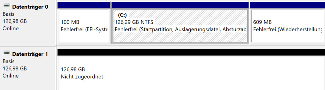 Im Prinzip befinden wir uns jetzt wieder zu Beginn des Artikels, entsprechend kann erneut eine zusĂ€tzliche Festplatte fĂŒr die Spiegelung verwendet werden: