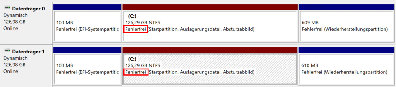 Sind beide DatentrÀger synchron, wird der Status als "Fehlerfrei" angezeigt: