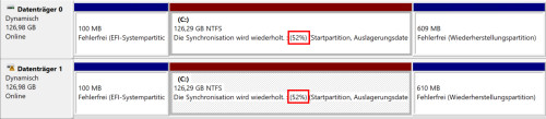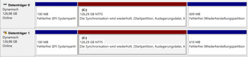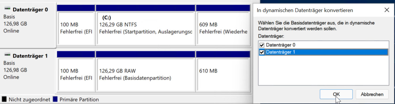Wie bereits erwÀhnt, konvertieren wir die Festplatten zuletzt noch auf "dynamisch", damit das Layout der Partitionen möglichst dem Layout der primÀren Festplatte entspricht.