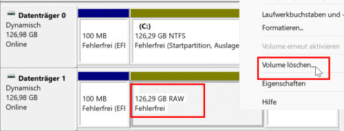 Nach dem Start des PC zeigt uns die DatentrÀgerverwaltung den verlorenen DatentrÀger: