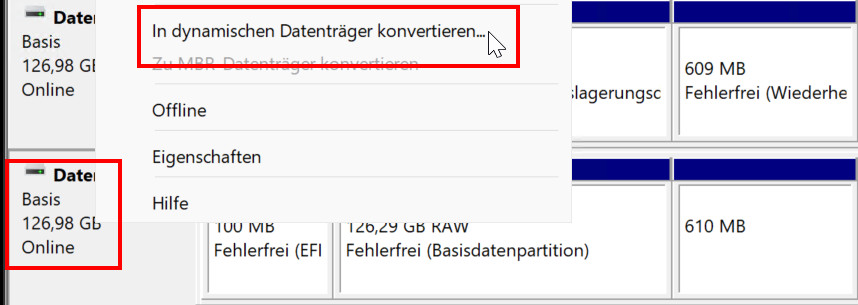 | DatentrÀger konvertieren | Beide DatentrÀger in dynamische DatentrÀger konvertieren. |