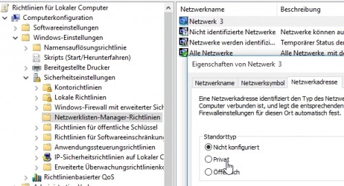 Die Einstellung befindet sich unter Computerkonfiguration/Windows-Einstellungen/Sicherheitseinstellungen/Netzwerklisten-Manager-Richtlinien:
