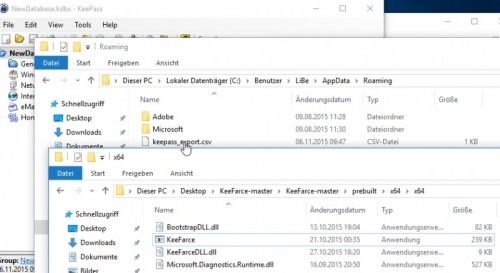 Natürlich könnte eine angepasste KeeFarce-Version die .exe auch auf einem anderen Weg lokalisieren, daher hilft das Umbenennen nur bei der aktuellen KeeFarce Version.