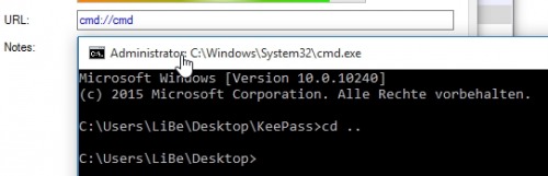 Programme die mittels URL aus KeePass gestartet werden, werden mit dieser Variante auch als Administrator gestartet, der Sicherheitsgewinn bleibt dann auf der Strecke.