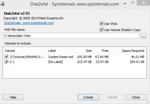 Disk2vhd