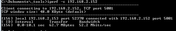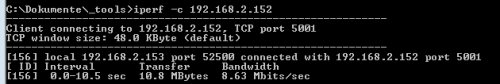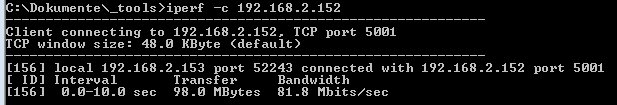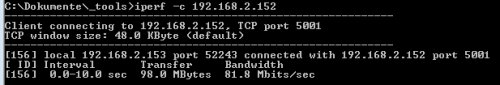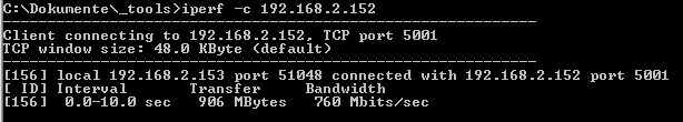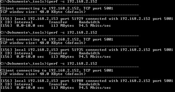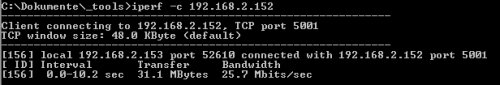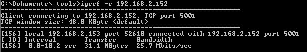 Die Geschwindigkeit habe ich mit iPerf gemessen, siehe LAN / WLAN Speedtest: Geschwindigkeit im Netzwerk testen.