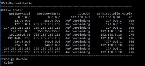 192.168.0.0 255.255.255.0 Auf Verbindung 192.168.0.10