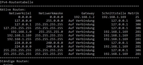 Meine LAN Verbindung zeigt folgende Routing-Einträge: