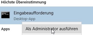 Damit die Routingtabelle bearbeitet werden kann, müssen wir diese als Administrator starten: