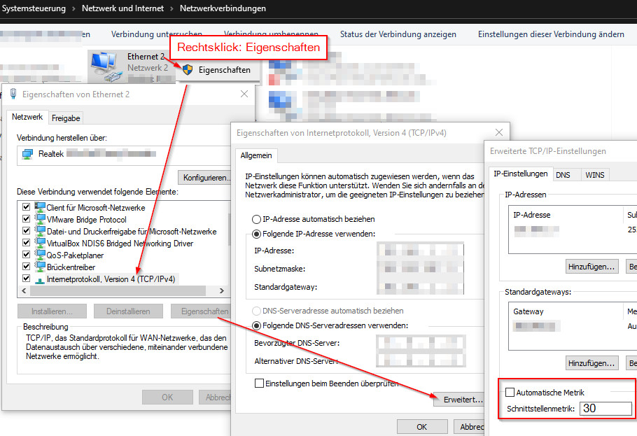 User: Amber Vielen Dank für den sehr guten Artikel. Ich stehe vor dem gleichen Problem.. Was würde passieren wenn ich die Metrik in den Eigenschaften der Adapter manuell einstelle, funktioniert das auch oder ist das problematisch. Vielen Dank im voraus