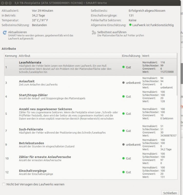 Die Ubuntu DVD kann also für die Analyse des Smart Status verwendet werden (Auch wenn der Rechner nicht mehr von der Festplatte bootet)