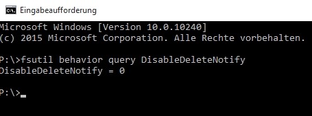 Zellen einer SSD Festplatte können nicht beliebig oft beschrieben werden. Für eine höhere Lebenszeit werden die Schreibvorgänge durch den Festplattenkontroller möglichst auf alle freien Zellen verteilt. Ein Schreibvorgang setzt also freie Zellen oder gelöschte Zellen voraus. Würden die Zellen unmittelbar vor dem Schreibvorgang gelöscht werden, würde der Löschvorgang den Schreibvorgang ausbremsen. Aus diesem Grund kommunizieren moderne Betriebssysteme den Löschvorgang mit dem TRIM Befehl an die Festplatte, diese löscht die Bereiche, wenn gerade nichts anderes zu tun ist, komplett von ihrem Speicher. Die Bereiche sind bereit für neue Schreibvorgänge. Ob TRIM aktiviert ist, kann in der Eingabeaufforderung mit dem Befehl: