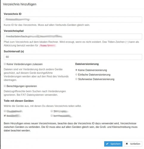 User: Andreas Hallo, ja mir fällt etwas zu dem Thema ein. :-) Bei mir läuft das perfekt auf dem Cubietruck sowie auf dem Desktop-PC mit Linux Mint. Auf dem Desktop-Rechner mit Windows 7 64B läuft es, aber aus welchem Grund auch immer kann ich keine Ordner syncen, die wie z.B. der Thunderbird-Profile-Ordner normalen Usern nicht zugänglich sind. Solche Ordner werden dann von syncthing mit 0 Byte angezeigt, angeblich sogar synchronisiert, auf dem Cubietruck, hat der Ordner dann aber auch nur 0 Byte. Muss syncthing als Admin gestartet werden? Wie ist das mit der Schreibweise der Windowsverzeichnispfade? Linuxlike / oder windooftypisches \ ?? Auf dem Screenshot sieht das ja eher nach Linuxpfad aus mit /media... usw. Nunja, prinzipiell ein geniales Stück Software, unter Win wird das Problem wohl zwischen Rückenlehne und Tastatur verursacht. Weiter auf der Pirsch durch die Weiten auf der Suche nach der Lösung... Grüße Andreas