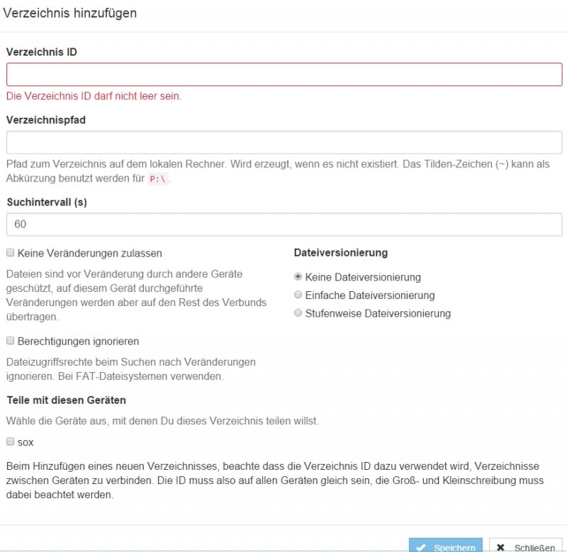 Nach Angabe des Pfades und Speichern der Einstellungen, werden die Ordner synchronisiert.