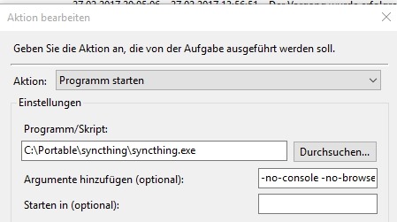 In Windows kann Syncthing automatisch in der Aufgabenplanung gestartet werden: