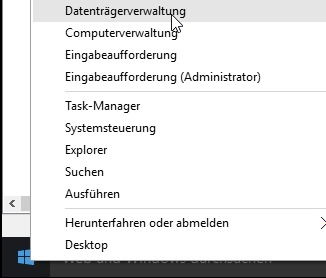 Dazu Rechtsklick auf das Windows Symbol: "Datenträgerverwaltung"
