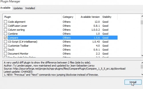 dann das Plugin „Compare“ auswählen und „Install“