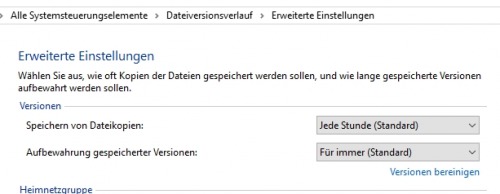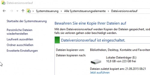 Der Dateiversionsverlauf kann in der Systemsteuerung unter "Dateiversionsverlauf" aktiviert werden.