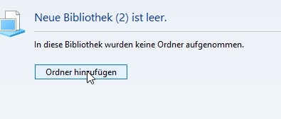 Um Ordner hinzuzufügen, müssen diese in die Bibliothek aufgenommen werden, dazu im Explorer auf Ansicht, Ordneroptionen und "Bibliotheken anzeigen":