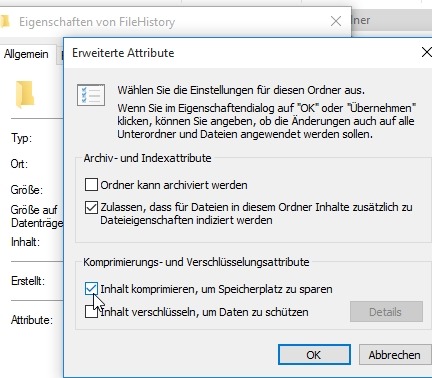 Eine Möglichkeit etwas Platz zu sparen, bietet die Komprimierung, diese habe ich bei mir zusätzlich aktiviert: