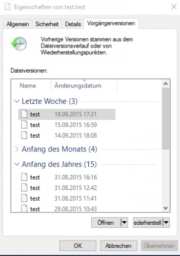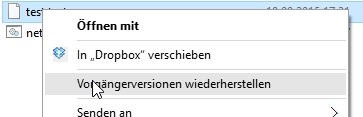 Das Wiederherstellen von Vorgängerversionen, ist am selben Rechner per Rechtsklick auf einen Ordner oder einer Datei möglich: