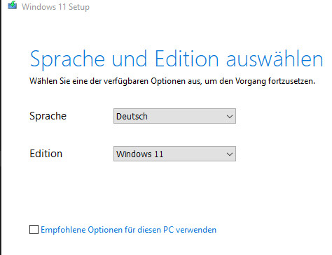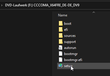 Für Windows 11 kann das heruntergeladene .iso-File gemountet und das Setup ausgeführt werden: