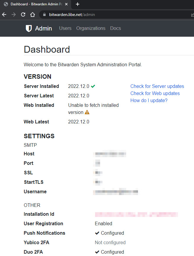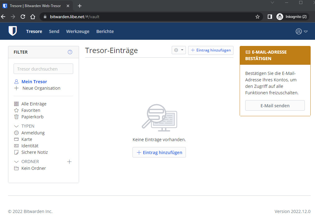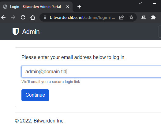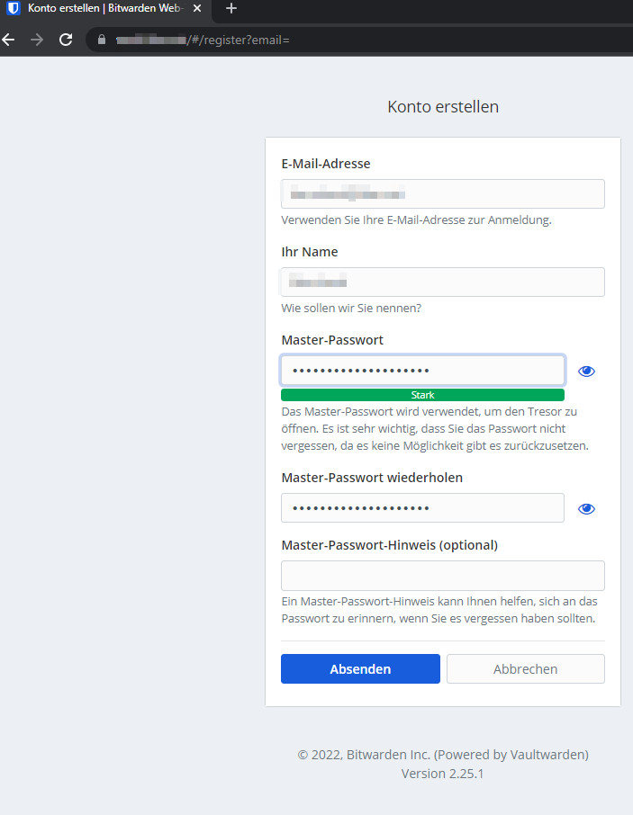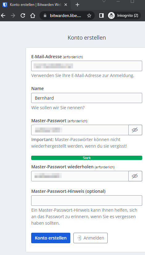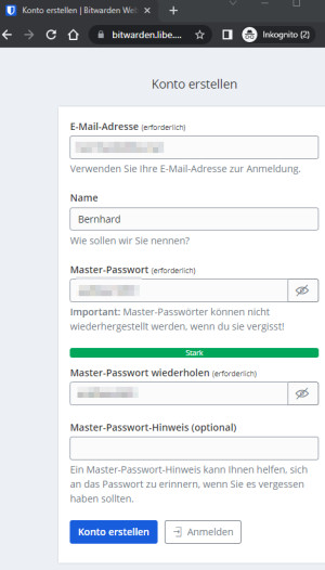 Der Aufruf erfolgt wieder über die angegebene Domäne, laut dem Beispiel: https://bitwarden.domain.tld