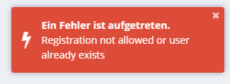 Ein Fehler ist aufgetreten. Registration not allowed or user already exists.