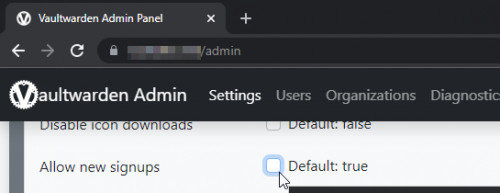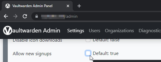Damit ich bestimmen kann, wer den Passwort-Manager verwenden kann, habe ich die Signups deaktiviert.