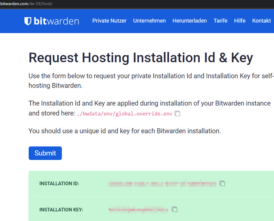 #der Install-Key kann von folgender Seite abgerufen werden https://bitwarden.com/de-DE/host/