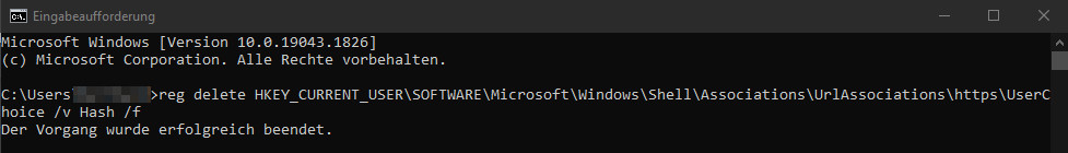 reg delete HKEY_CURRENT_USER\SOFTWARE\Microsoft\Windows\Shell\Associations\UrlAssociations\https\UserChoice /v Hash /f