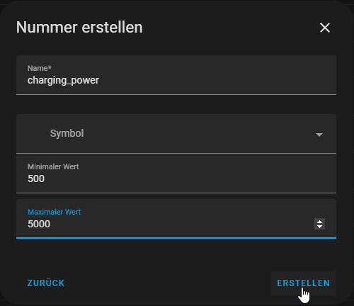 Dazu wird in dem Beispiel der Wert von input_number.charging_power verwendet.