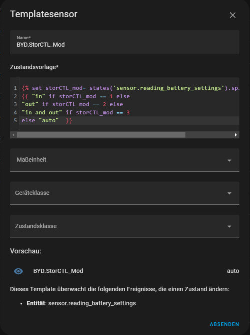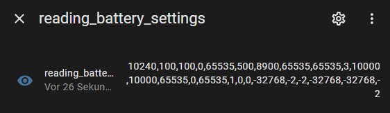 Der Sensor "sensor.reading_battery_settings" liest alle relevanten Modbus-Register ein und dient als Basis für die später erwähnten Template-Sensoren: