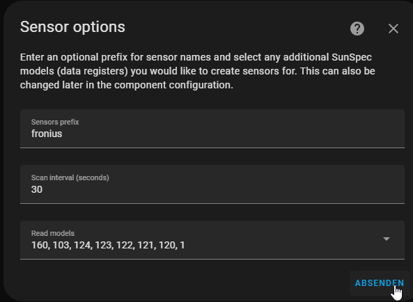 Der Wizard erlaubt das Hinzufügen eines bestimmten Prefix für die gefundenen Komponenten der PV-Anlage: