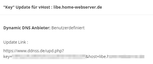 Wie bereits erwähnt reicht für das Aktualisieren der IP-Adresse beim DynDNS-Service ein einfacher Aufruf im Browser. Ddnss.de stellt dazu einen "Update-Link" zur Verfügung: