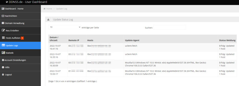 Ddnss.de zeigt im Update-Log, von welchem Client der Aufruf stattgefunden hat: