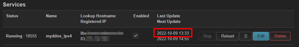 Nach dem Aktivieren des Pakets kann "Dynamic DNS" unter "Services" konfiguriert werden: