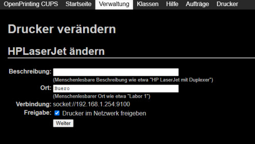 Wichtig, an dieser Stelle: Den Drucker im Netzwerk freigeben: