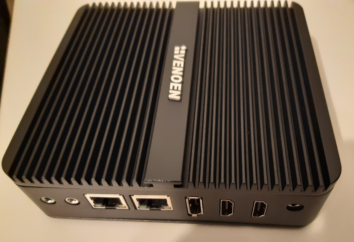 Als Server habe ich mir einen Mini PC angesehen. Dank der verbauten CPU mit 10 Watt TDP und passiver Kühlung verbraucht der PC relativ wenig Strom und besitzt genügend Leistung, um diverse Webservices performant betreiben zu können. Konkret habe ich eine günstigere Alternative zu den bekannteren Intel NUC PCs getestet, ein Mini PC von VENOEN.