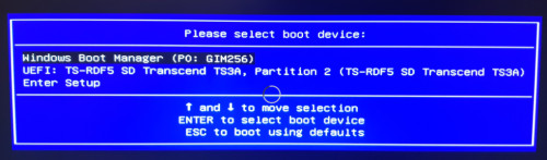 Als Vorbereitung habe ich einen USB-Stick über das Programm balenaEtcher mit dem Ubuntu Installationsimage bespielt, siehe: bootfähiger Live-USB Stick mit Ubuntu. Den USB-Stick in den PC gesteckt, erscheint dieser durch Drücken von F11 beim Starten des Rechners: