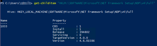 get-childitem "HKLM:\SOFTWARE\Microsoft\NET Framework Setup\NDP\v4\Full"