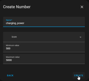 - Limit charging power to a defined value: "Charge-limit" and "charging_power"